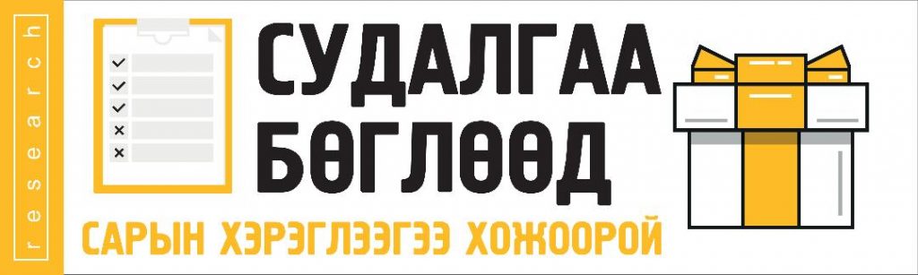 Нийгэмд үүсээд байгаа Ковид-19 цар тахлын улмаас онлайн судалгаа явуулж байна. Судалгаанд ИДЭВХТЭЙ оролцсон хэрэглэгчдээс нэг хэрэглэгчийг санамсаргүйгээр сонгож, ГУРИЛАН БҮТЭЭГДЭХҮҮНИЙ 1 САРЫН ХЭРЭГЛЭЭ бэлэглэх тул үнэн зөв хариулна уу.