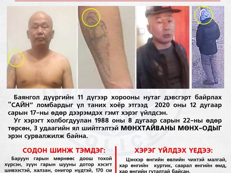 2020 оны 12 сарын 17-ны өдөр Баянгол дүүрэгт байрлах “САЙН” ломбардыг үл таних хоёр этгээд дээрэмдээд зугтсан хэрэг гарч байсан. Хэргийг үйлдсэн 1988 онд төрсөн урьд нь дээрэмдэх төрлийн гэмт хэрэг үйлдэж ял, шийтгэл эдэлж байсан М.Мөнх-Одыг улсын хэмжээнд эрэн сурвалжилж байсан юм.