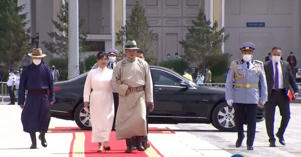 УИХ-ын дарга Г.Занданшатар “Та бүхний өнөөдрийн амар амгаланг айлтгая. Өнөөдрийн ёслолд УИХ-ын 68 гишүүн хүрэлцэн ирсэн. УИХ-ын 2021 хаврын ээлжит чуулганы нэгдсэн хуралдаан нээснийг мэдэгдэв. Чуулганы нэгдсэн хуралдаанаар Үндсэн хуулийн дагуу шинээр сонгогдсон Ерөнхийлөгч Ухнаагийн Хүрэлсүх тангараг өргөнө.