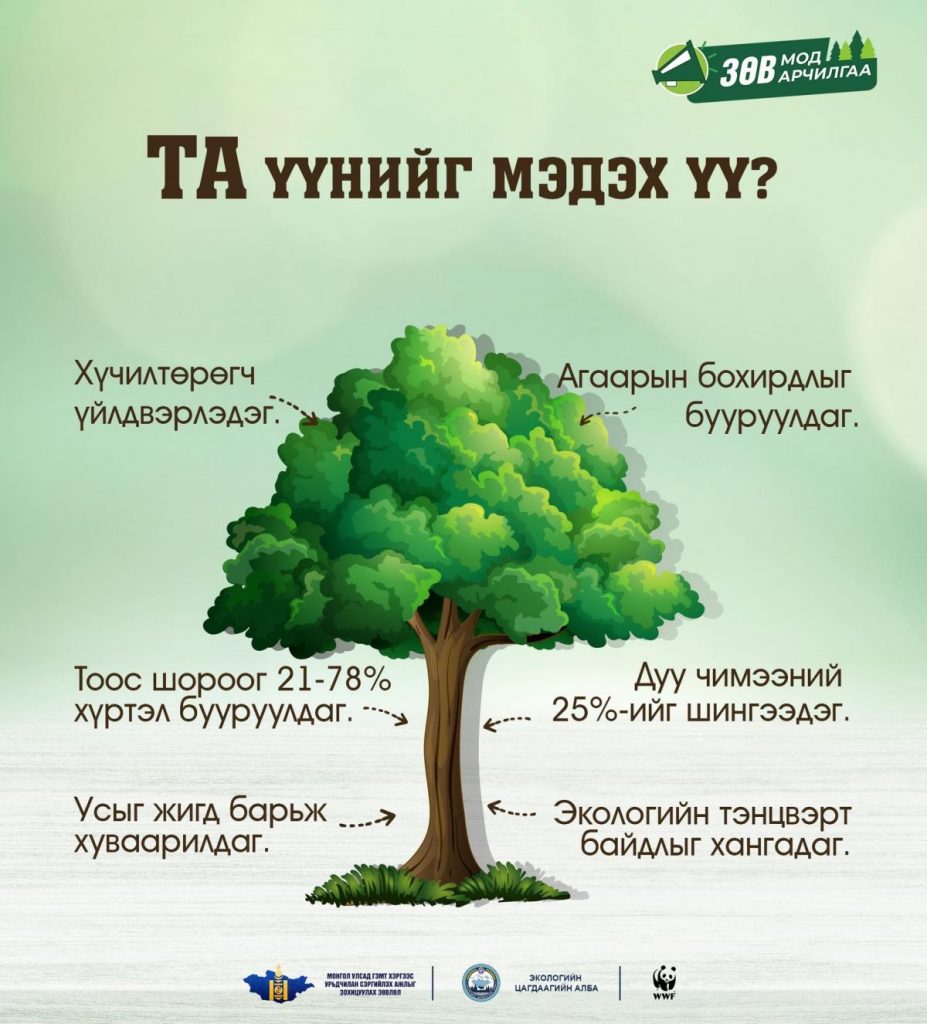 Монгол Улсад Гэмт хэргээс урьдчилан сэргийлэх ажлыг зохицуулах зөвлөл, Экологийн цагдаагийн алба хамтран “Зөв мод-Зөв арчилгаа” уриатай ногоон дуу хоолой нэг сарын аяныг эхлүүлээд байна.