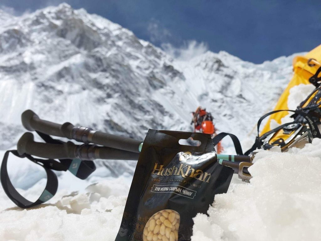 “Хушхан” брэнд уулчид биднийг ивээн тэтгэж ажилласан. Монголд үйлдвэрлэсэн Хушханы самар маш амттай, цэвэрхэн, эрүүл стандартын дагуу хийгдсэн самар байсан. Монгол самраа авч явахад хөнгөхөн, өлссөн үедээ амруугаа хийчихэд илчлэг ихтэй өл дардаг. Гол нь өндөрт хэн ч их хоол идэж чадахгүй болдог заримдаа хүчээр идэх тохиолдол их бий, бид самраа идээд л хүч тамираа сэргээж явдаг байсан даа. Бид ууланд явж дасгал хөдөлгөөн хийх бүртээ амино хүчлийг самар идэж л дархлаагаа сайжируулсаар оргилд амжилттай оргилдож, нутагтаа ирлээ.
