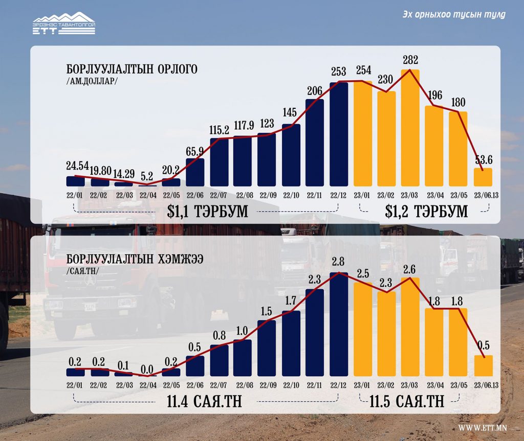 “Эрдэнэс Тавантолгой” ХК 2023 оны 6 сарын 13-ны байдлаар 11.5 сая.тн нүүрс борлуулж, 1.2 тэрбум ам.долларын борлуулалтын орлоготой ажиллалаа.
