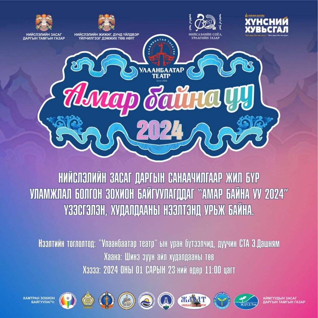 Нийслэлийн Засаг даргын санаачилгаар жил бүр уламжлал болгон зохион байгуулдаг “Амар байна уу 2024” үзэсгэлэн худалдааны нээлт өнөөдөр буюу 2024 оны 01 дүгээр сарын 23-ны өдрийн 11:00 цагт Шинэ зуун айлын худалдааны төвд  болно.