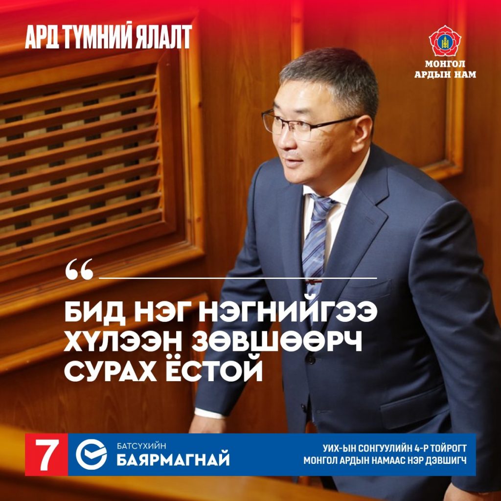 УИХ-ын сонгуулийн 4-р тойрогт МАН-аас нэр дэвшигч Батсүхийн Баярмагнай Хаалгач гоол хийх шаардлагагүй хэмээв.