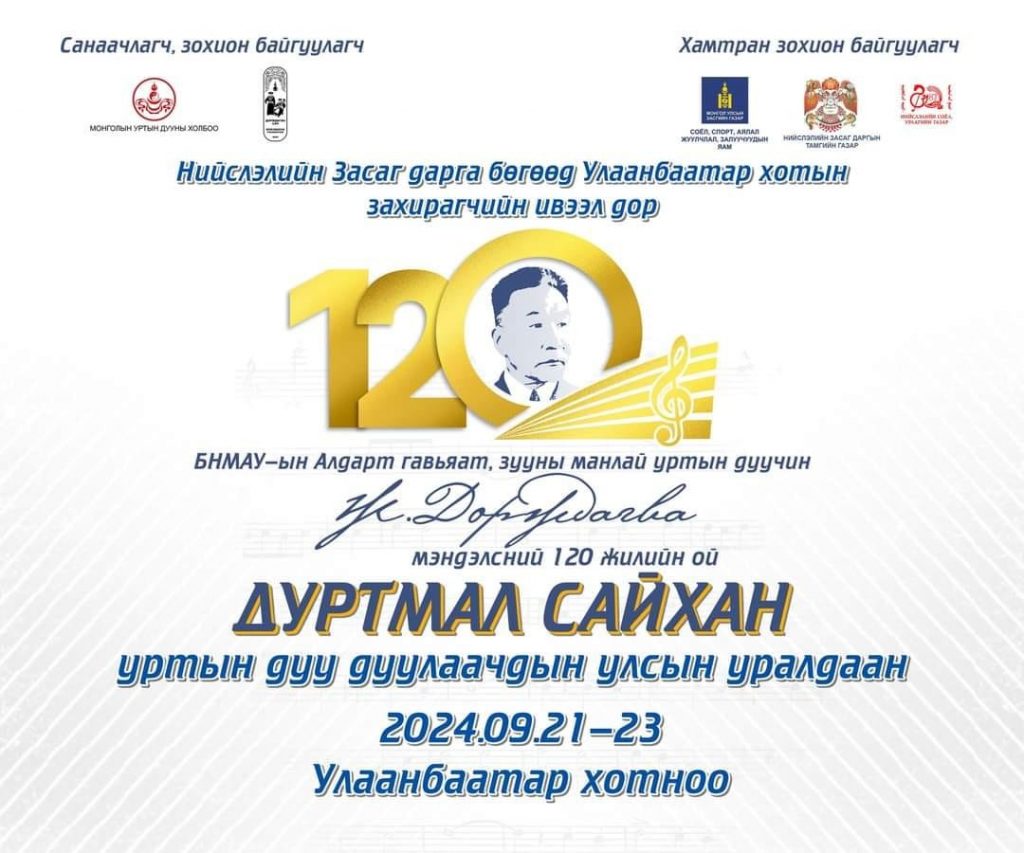 Монгол оюуны давтагдашгүй өв, үндэсний уртын дууны урын санг баяжуулах, өвлөн уламжлуулах, түгээн дэлгэрүүлэх зорилгоор БНМАУ-ын алдарт гавьяат дуучин, ХХ зууны манлай уртын дуучин Жигзавын Дорждагвын мэндэлсний 120 ойн нэрэмжит уртын дуу дуулаачдын улсын уралдааныг ирэх есдүгээр сарын 21-23-ны хооронд Улаанбаатар хотноо, Нийслэлийн Засаг дарга бөгөөд Улаанбаатар хотын захирагчийн ивээл дор зохион байгуулах гэж байна.