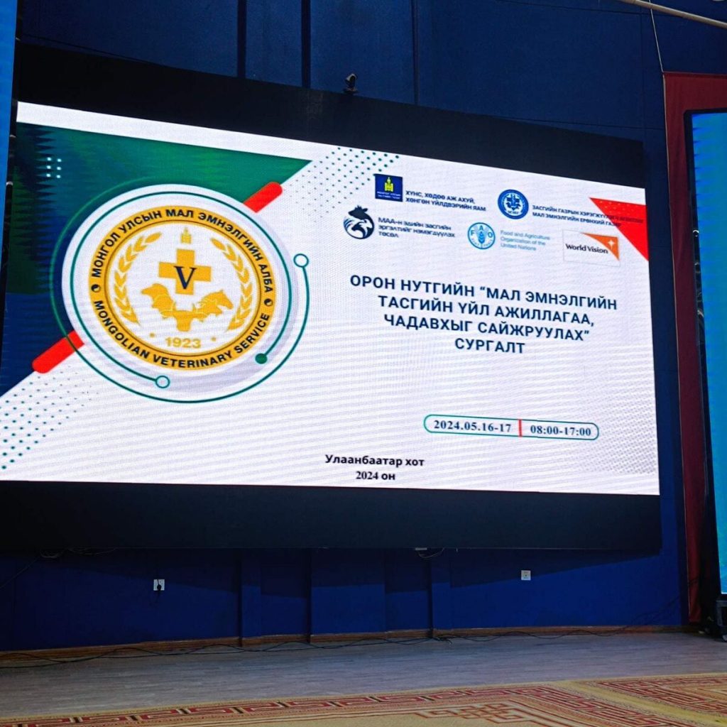 Мал, амьтны эрүүл мэндийн тухай хуулийн хүрээнд сум, дүүрэг дэх Мал эмнэлгийн тасгийн улсын байцаагч, тархвар зүйч нарт “Орон нутгийн мал эмнэлгийн тасгийн үйл ажиллагааны чадавхийг сайжруулах” сэдэвтэй нэгдсэн сургалтыг анх удаа хийлээ.