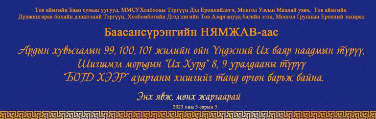 МЭНДЧИЛГЭЭ – Монгол Улсад орчин цагийн Зэвсэгт хүчин үүсэн байгуулагдсаны түүхт 102 жилийн ой, “Монгол цэргийн өдөр”-ийн баярын мэндийг өргөн дэвшүүлье