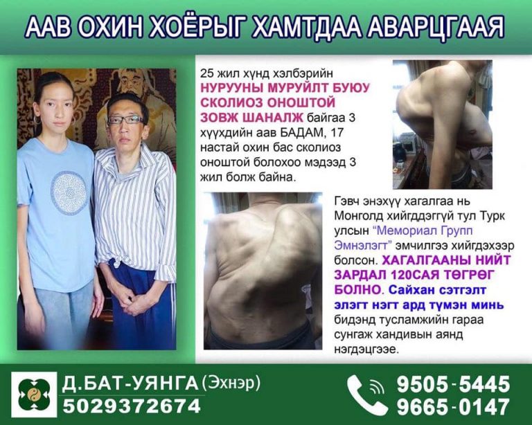 Аав охин хоёр хүнд өвчнөөр өвджээ. Гурван хүүхдийн аав Бадам анх 25 жилийн өмнө нурууны муруйлт буюу сколиоз өвчнөөр өвдөж…