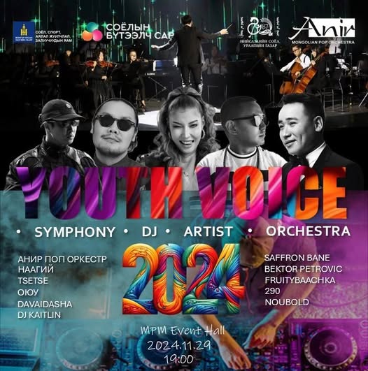 Соёл, спорт, аялал жуулчлал, залуучуудын яамнаас санаачлан хэрэгжүүлж буй “Соёлын бүтээлч сар –2024” аяны хүрээнд “Youth Voice-2024” тоглолт ӨНӨӨДӨР болох…